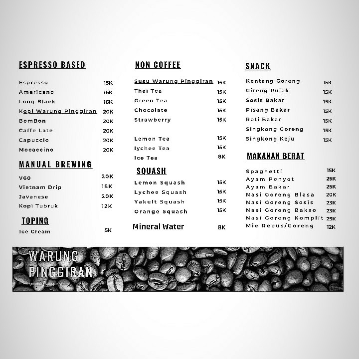 So, whether you’re a coffee enthusiast eager to explore a variety of blends or simply looking for a cozy place to unwind with loved ones, Warung Pinggiran promises a unique experience that combines the best of culinary and artistic delights. Make your way to Bogor, and don't miss the chance to visit this wonderful café—it’s not just a meal, it’s an experience!